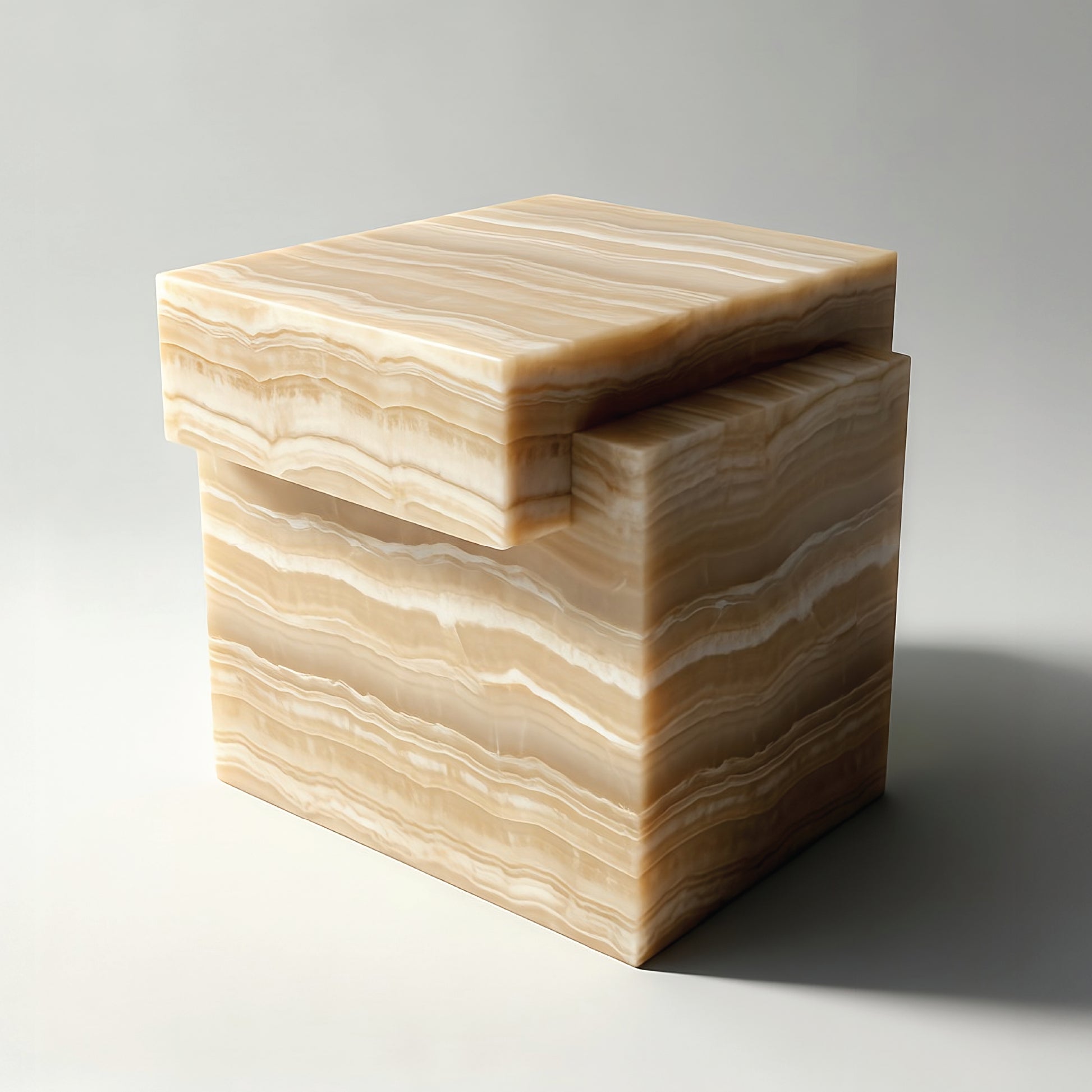La mesa ALMA en Ónix Dorado combina la pureza del diseño geométrico con la calidez visual del ónix. Su estructura maciza y proporciones equilibradas crean una presencia serena, ideal para salones, dormitorios o zonas de lectura.