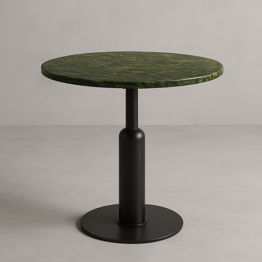 Una pieza funcional para hostelería, con diferentes opciones de tablero de piedra natural que aporta distinción y durabilidad. Su pie metálico y robusto ofrece estabilidad y un diseño contemporáneo que encaja en ambientes elegantes y modernos.
